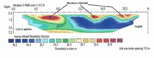 Tomogramma di rilievo geoelettrico per ricerca archeologica