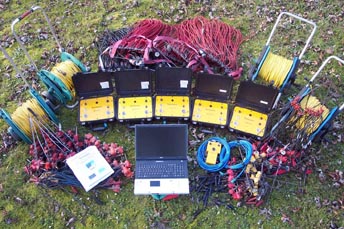 4) Sismografi per acquisizione dati con sorgenti impulsionali: OYO a 24 e 48 canali, Seistronix RAS 120 canali nel 1995 e per registrazione dati generati con sorgenti vibrazionali Wacker e Vibroseis: Geometrics Geode nel 1998 fino a 192 canali.