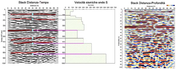 Stack Distanza/Tempi e Sezione sismostratigrafica 2D - Elaborati rilievo eseguito nel 2017 con Vibroseis