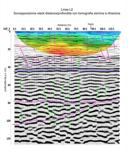 Sovrapposizione tomogramma a rifrazione e Sismosezione a riflessione